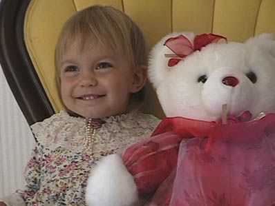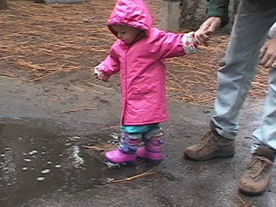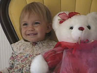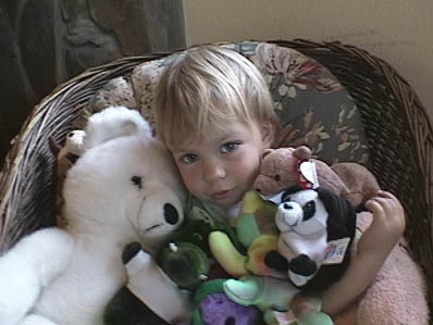 through the rain puddles! She loves the outdoors! In the pictures below, Anya is showing off her extended family of teddy-bears and stuffed animals. |